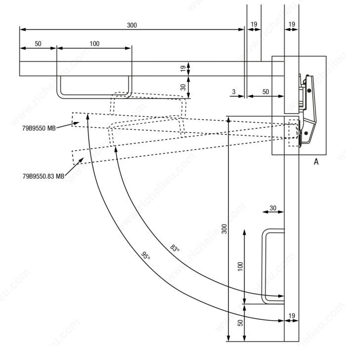 Charnière CLIP top BLUMOTION pour coin mort