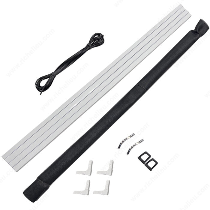 Ensemble pour réparation de moustiquaire de fenêtre de haute qualité, fini blanc. Peut être coupé à n'importe quelle taille plus petite. Construisez une moustiquaire de fenêtre en quelques minutes.