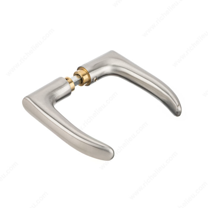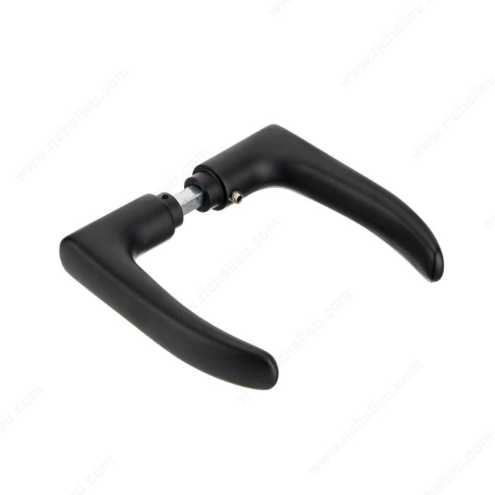 Cet ensemble comprend une paire de poignées et toute la quincaillerie de montage. Les poignées à levier de courbé sont conçues pour être utilisées avec des loquets à montage sur verre.