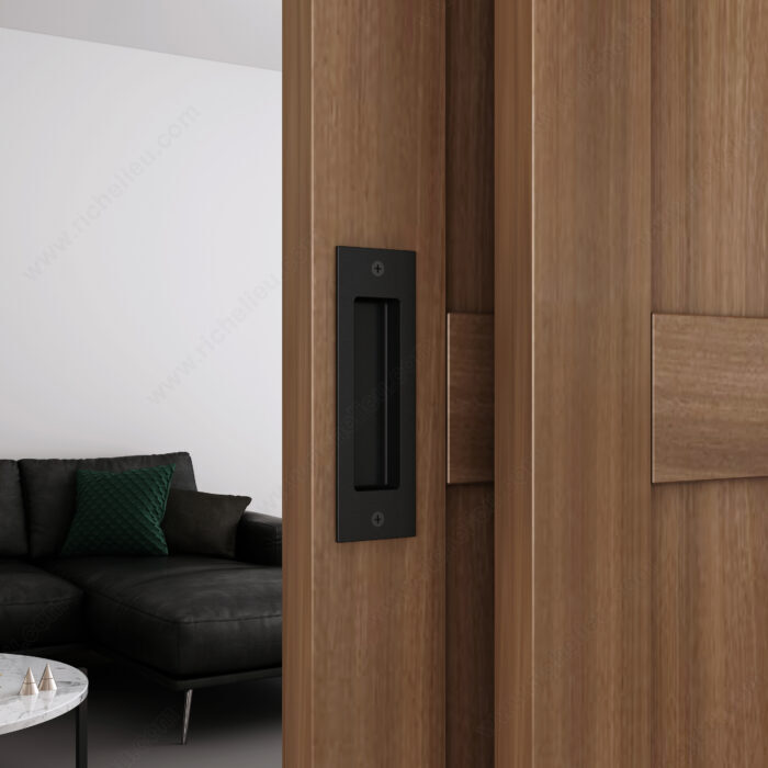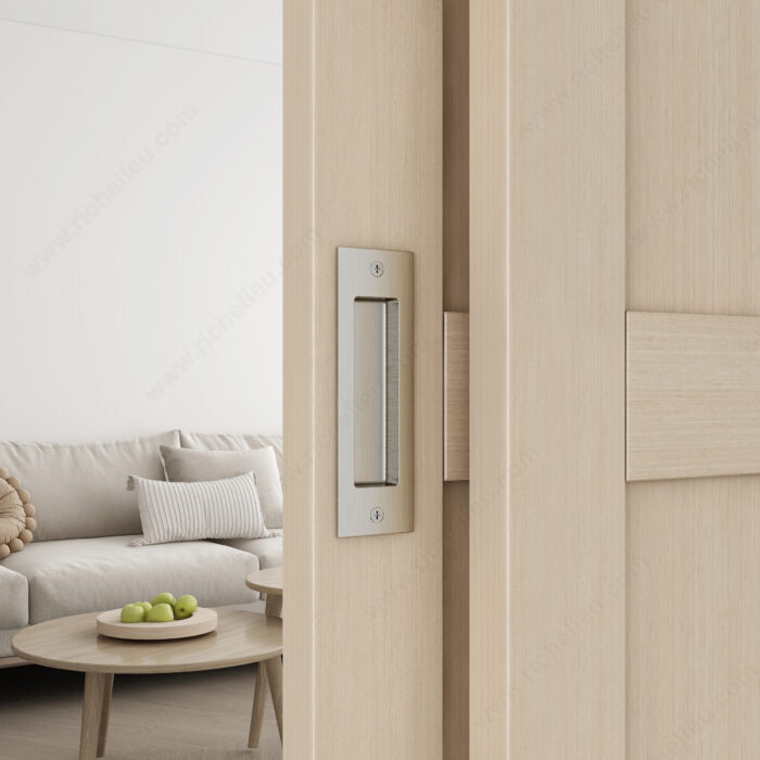 - Chaque ensemble comprend deux poignées de porte rectangulaires encastrées.