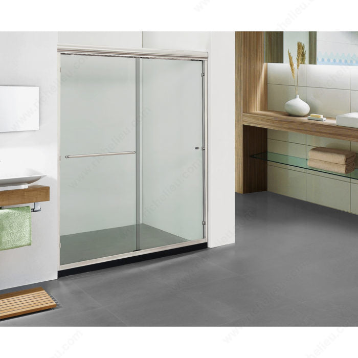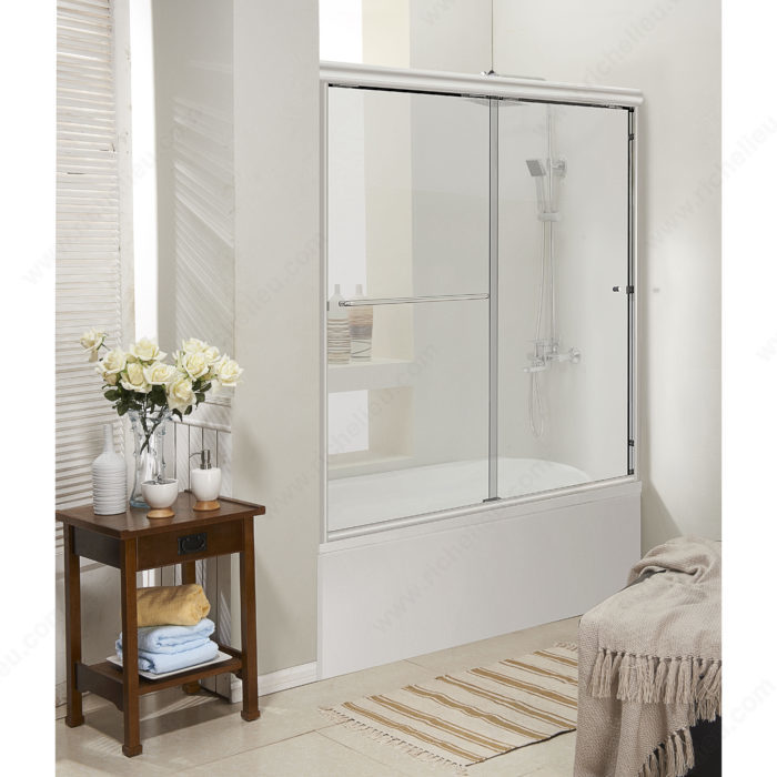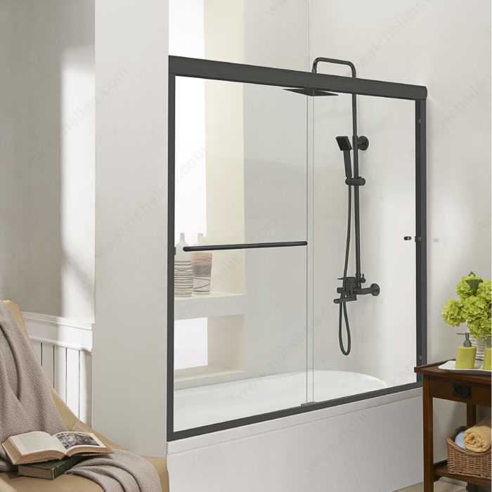 Ce système de porte coulissante est conçu pour être installé sur une baignoire ou socle de douche. Il remplace l'utilisation d'un rideau de douche traditionnel et donne un look élégant et moderne à la salle de bain. Le système peut être un bon choix pour les petites salles de bain, car il ne prend pas autant de place qu'une cabine de douche à porte battante.
