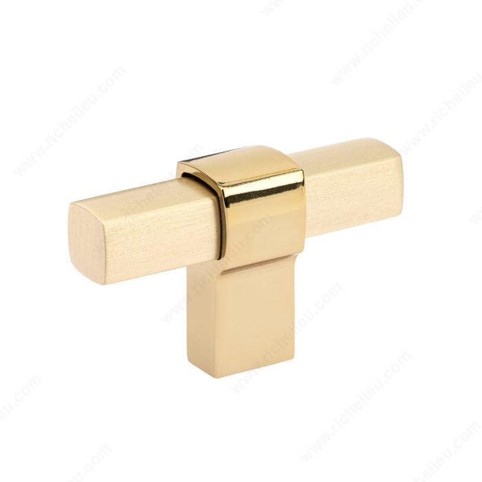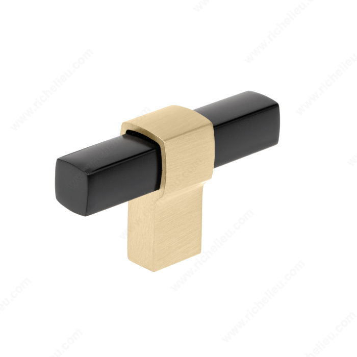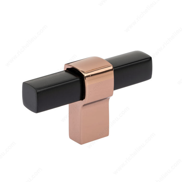 This wonderful T-shaped knob features a squared cylindrical handle and a unique foot in a different finish. This knob will add a modern note to your cabinets and furniture. Offered in a variety of high-quality finishes.