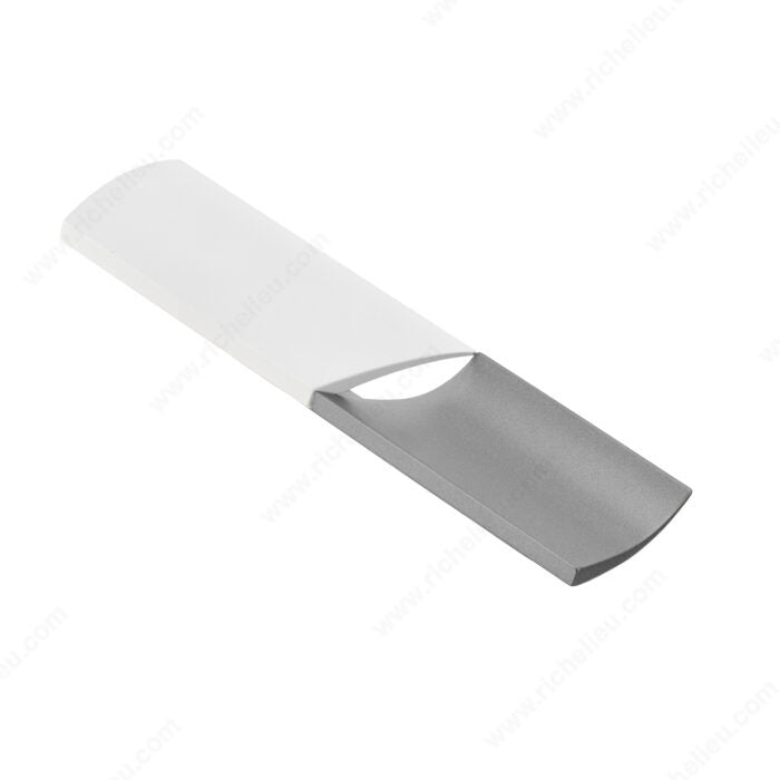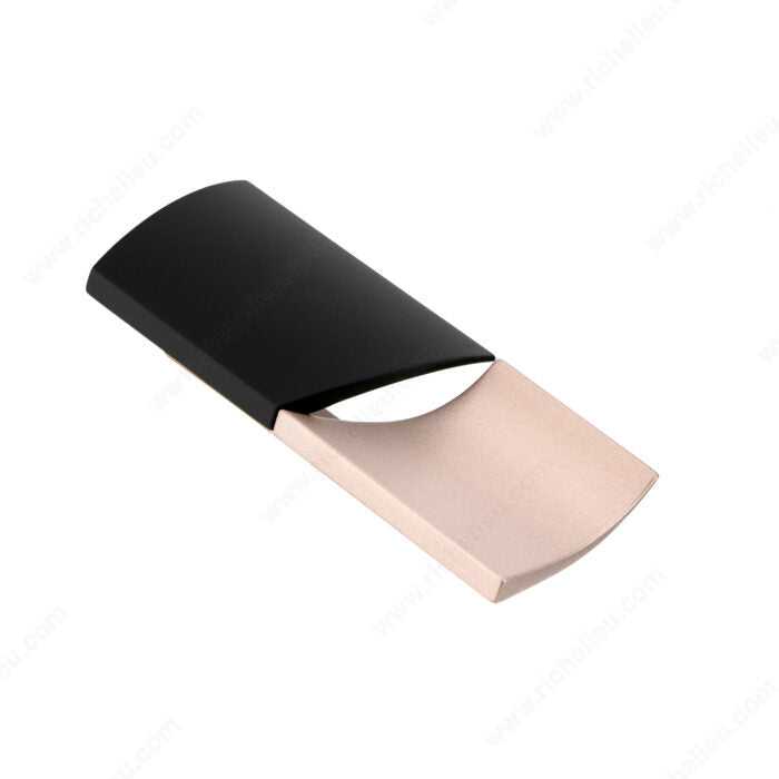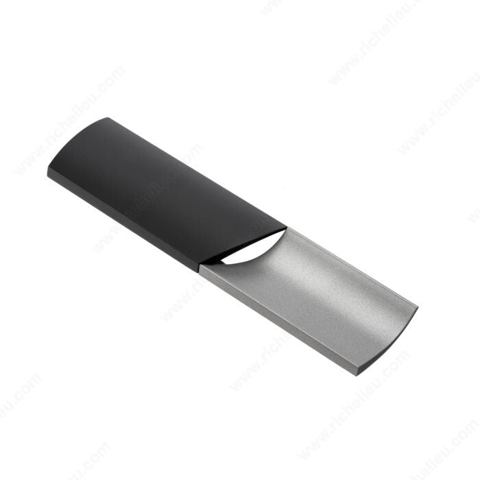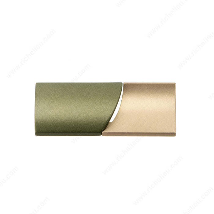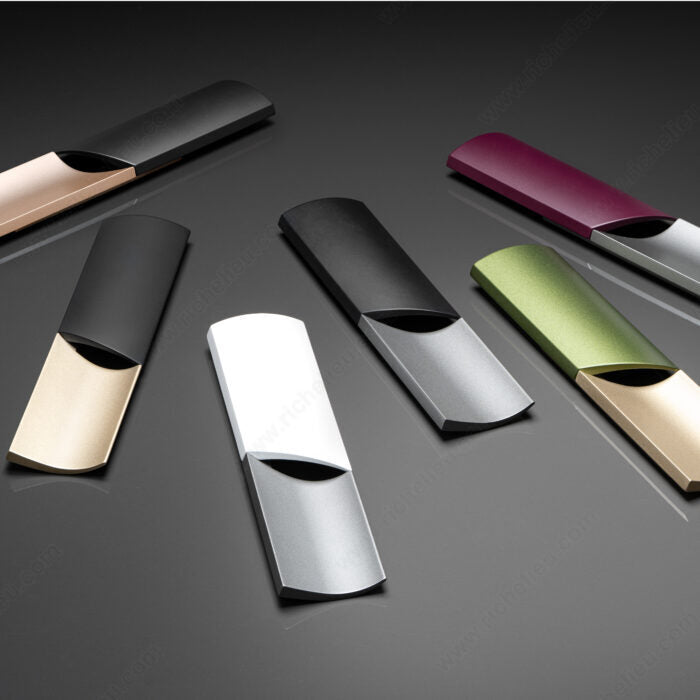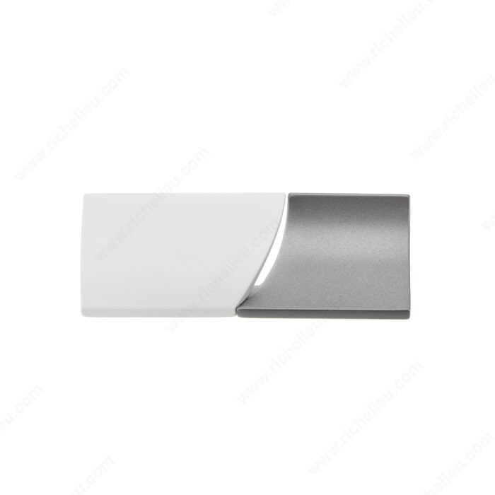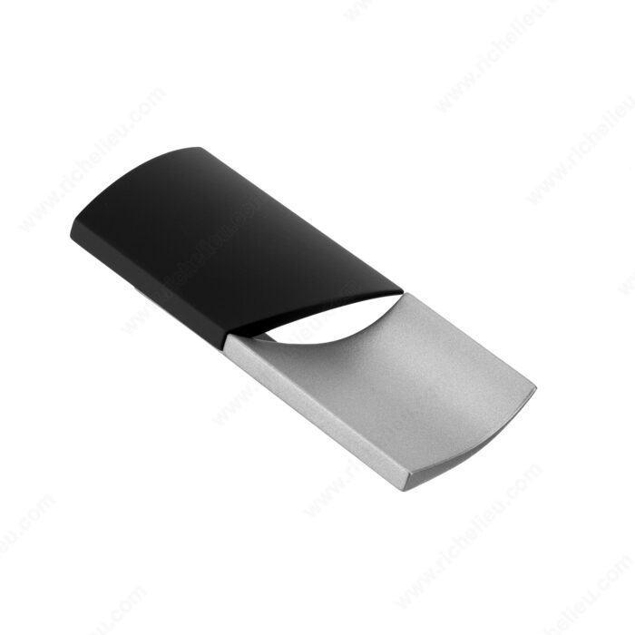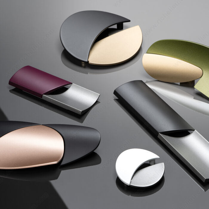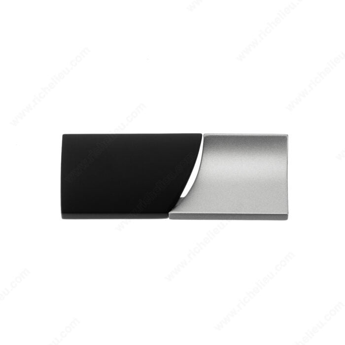 This model features opposed half cylinders, one convex and one concave, to communicate a sense of balance and elegance. It is sure to make an artful statement in kitchens, wardrobes and on furniture. The soft contours and rounded edges of the shapes make for a modern, yet timeless design.