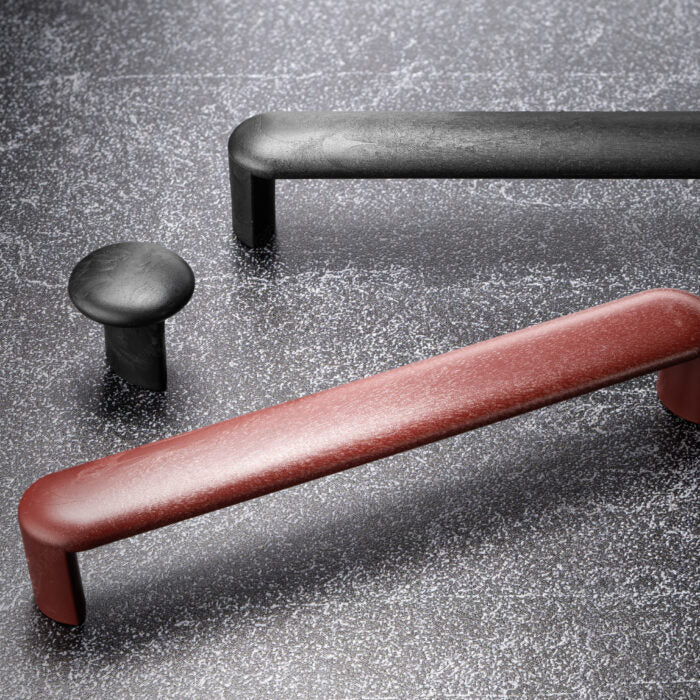 This cabinet handle is an eco-friendly choice for modern interiors. It features rounded end bases for a smooth grip. Made from HDPE polymers derived from fishermen's nets, it is strong and durable, resistant to moisture, and features a unique, functional design. As part of the Ocean Collection, this pull helps to reduce plastic waste by upcycling used plastic fishnets, making it a responsible choice for environmentally conscious clients.