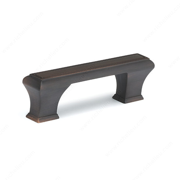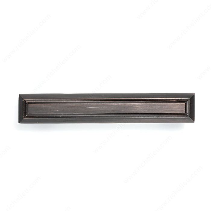 Classic rectangular handle for kitchen or bathroom cabinet. Its beveled edges and tapered ends make it a stylish accessory that will suit any room.