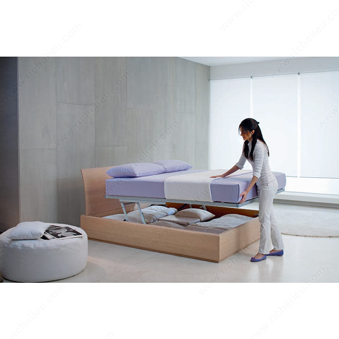Lift mechanism and hardware that allows you to create a storage unit under your bed. See the required products to choose the right bed frame.