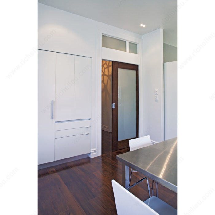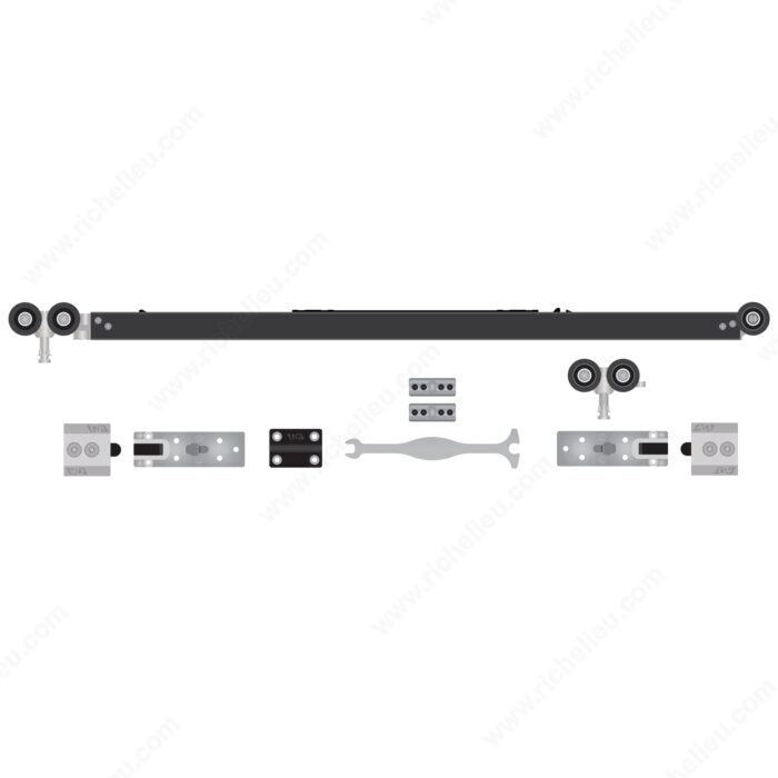 Ensemble de quincaillerie Cavity Sliders avec fermeture amortie SofStop pour des portes pesant jusqu'à 350 lb (160 kg) chacune.