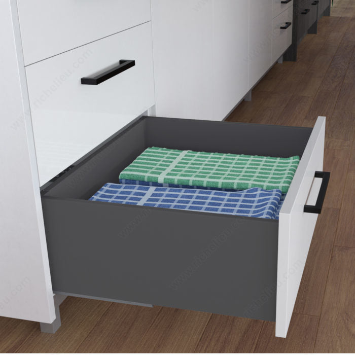Les parois minces de ce tiroir vous offrent un maximum de rangement sans oublier son choix de finis varié qui saura s'agencer à tous vos décors.